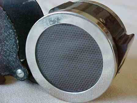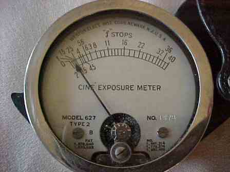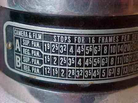 Like a large jewellers loup with black crackle metal cover, black plastic and chrome body. No calculator dial - the meter has a conversion plate on the side and uses the old 16 frames per second cine speed.