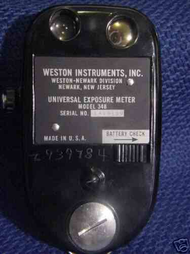 The Weston Ranger 9 from 1966 was a departure from the Weston formula. It used a Cds cell instead of selenium for greater sensitivity and had a very narrow measurement angle. This meter has a viewfinder, similar to those found on cameras. You look through the viewfinder to determine the area being read.It was a favourite of Ansel Adams who found it perfect for his Zone system of exposure/developing/printing - a system infinitely boring but it worked for him. There was also a special zone system dial that could be purchased. It's completely dependent on battery voltage, and won't read correctly at anything other than 2.70 volts (two 1.35 cells, or the single stacked version) . The PX13 batteries are no longer made however B&H can supply an Exell Battery 1.35V MRB625 Zinc Air Battery which is a replacement for the PX13 - see their website. Here are some of the features listed in the booklet: Interchangeable calculators Advanced sensitivity Million-to-one brightness range - 0.002 to 2000 candles per sq. ft. Eye-Level Viewfinder Two light scales Exposure dial Pointer lock on-off button Either reflected or incident light measurements by using a converter) ASA Film Speed Lock ASA can be set from 1.5 to 25,000 Shutter speeds can be set anywhere from 1/4000th of a second to 2 hours. Lens aperture settings can be set between f/.5 and f/64 Battery check slider Battery compartment easily opened with a coin Uses one type PX 14 or two PX 13 batteries